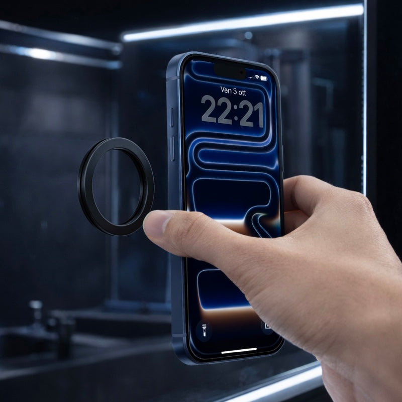 A clean, minimalist magnetic ring holder designed for secure grip and effortless hands-free use.